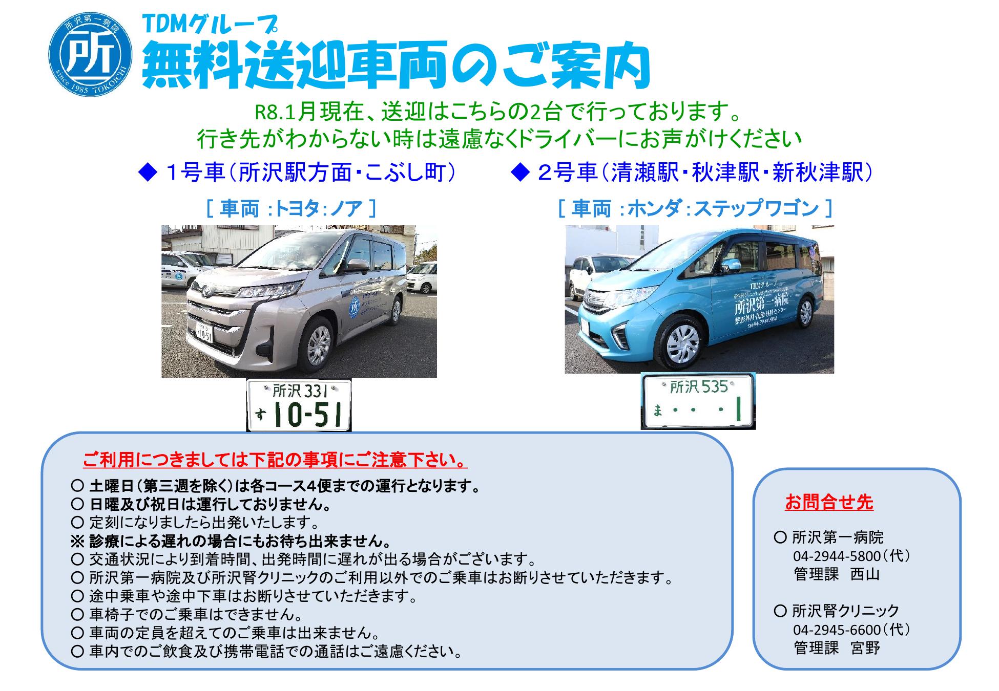 当院では、東所沢駅、所沢駅東口、新秋津駅、秋津駅北口、清瀬駅北口 間で専用車による無料送迎を行っています。