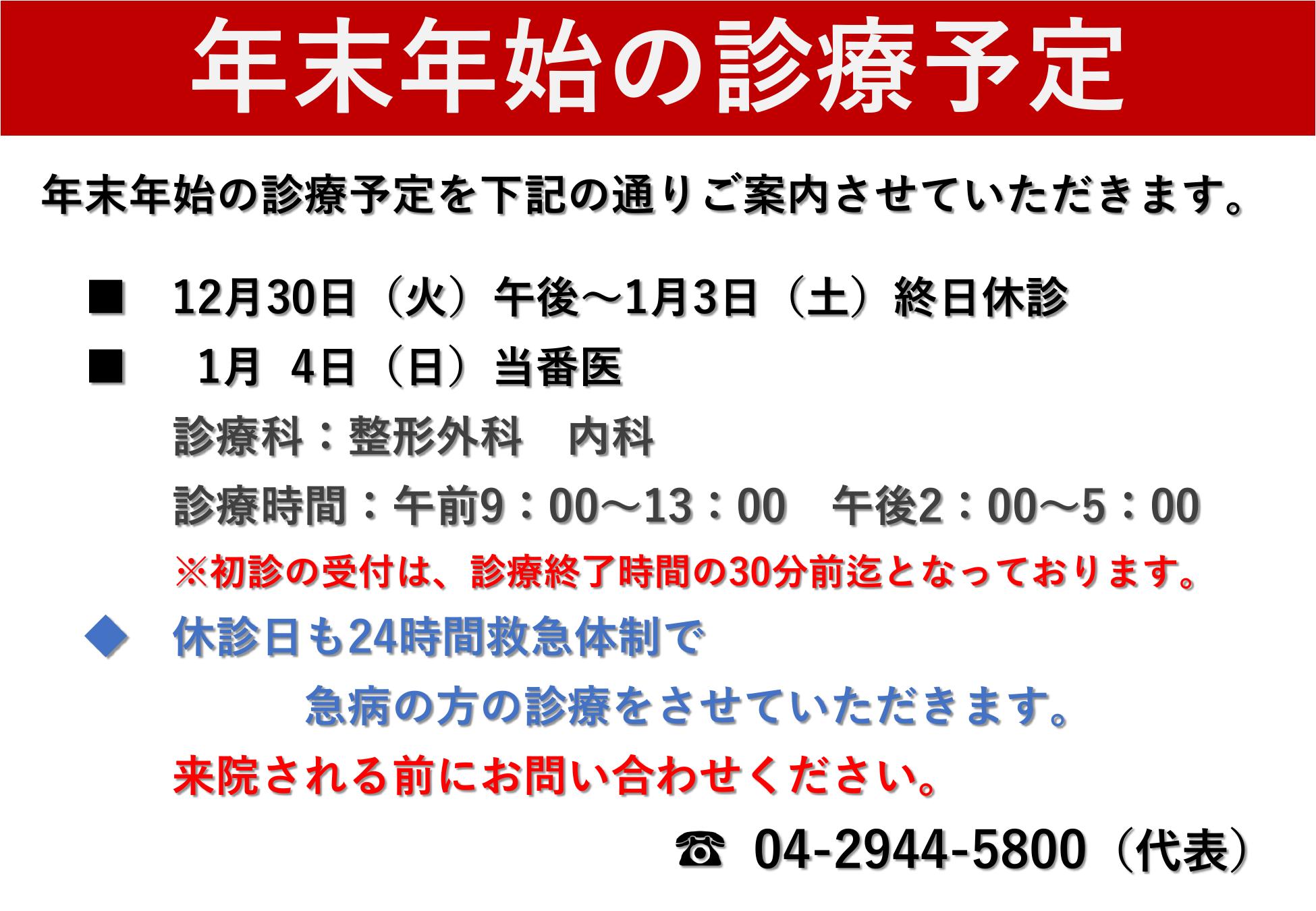 【年末年始】診療予定